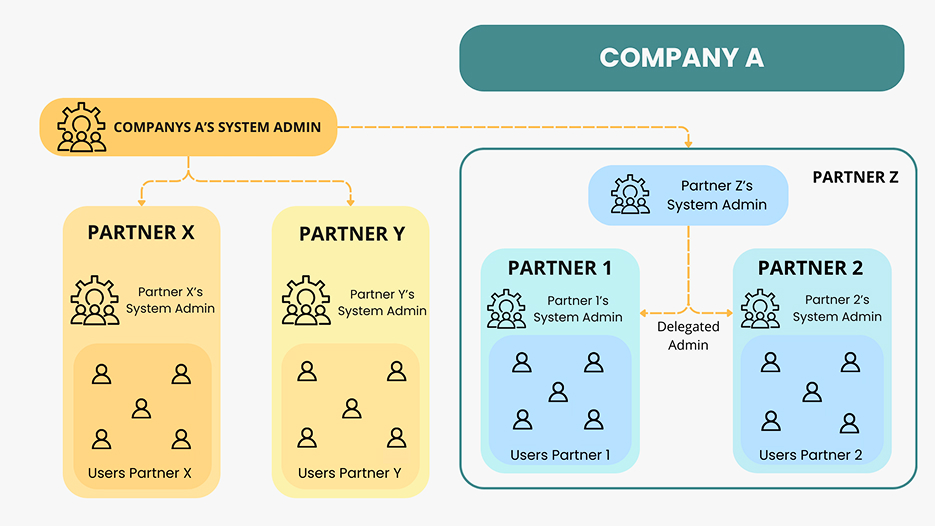 Permita que seus parceiros gerenciem seus próprios usuários, reduzindo a sobrecarga operacional da sua equipe de TI.